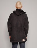 This black parka offers a rugged yet stylish look. Featuring oversized front pockets, a zip-front closure, and adjustable drawstrings at the waist and hem. Crafted from durable, textured fabric, a high collar with a packable hood.