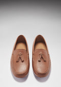 Tasselled Driving Loafers, tan grain leather