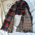 Unisex Retro British Checkered Tassel Scarf, Double-sided Faux Cashmere Shawl
