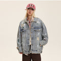 Unisex Washed Graffiti Ripped Denim Jacket - Retro