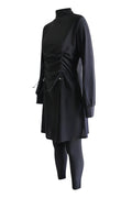 Women's Black Pleating Three-pieces Modest Swimsuit