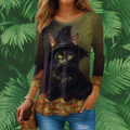 Women's Halloween Sweatshirts – Witch, Pumpkin & Cat Print Long Sleeve Crew Neck Sweater | Casual Autumn/Winter Top with Slight Stretch