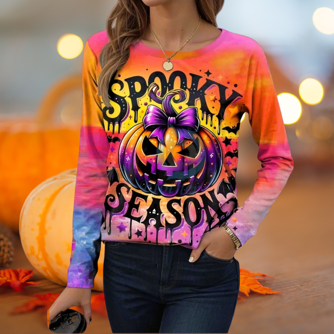 Whether you're attending a Halloween party or just want to add a touch of seasonal charm to your daily outfit, this casual, loose-fit top is ideal for autumn and winter wear.