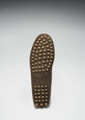 Hugs & Co. brown penny loafer driving shoes for women. Moccasin style driving loafers in luxurious brown suede upper and lined with a soft leather for extra comfort.