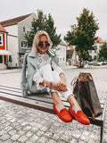 Hugs & Co. red penny loafer driving shoes for women. Moccasin style driving loafers in luxurious red suede outer and lined with a soft leather for extra comfort.