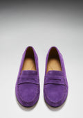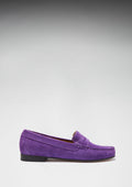 Women's Penny Loafers Leather Sole, purple suede
