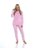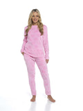Women's Heart Fleece Pyjamas Super Soft Plush PJs, Top & Pants Loungewear Set