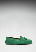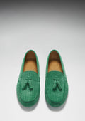 Women's Tasselled Driving Loafers, emerald embossed suede