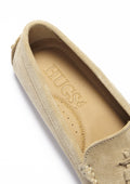 Hugs & Co. taupe tasselled loafer driving shoes for women. Made out of Italian suede in this versatile taupe sand suede, these driving loafers are a great staple piece. Moccasin style driving loafers in luxurious taupe suede upper and lined with a soft leather for extra comfort.