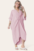 Womens V-Neck Tie Knotted Twisted Front Oversized Longline Midi Dress