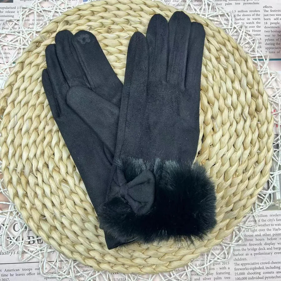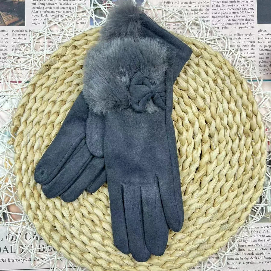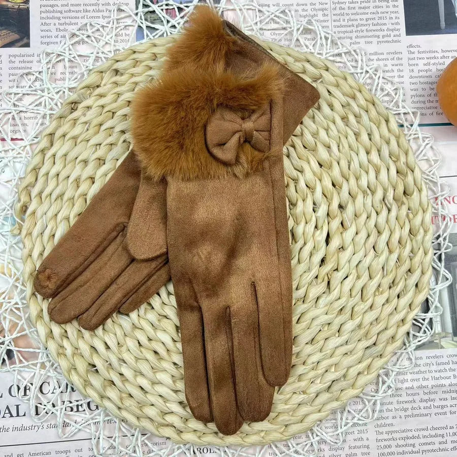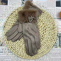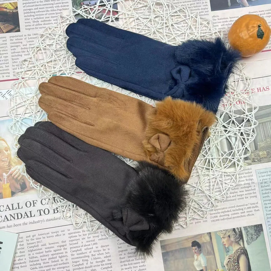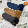 Women's Winter Touchscreen Gloves Rabbit Fur Lined Warm Suede Cycling Gloves Stylish Basic European Simple Design