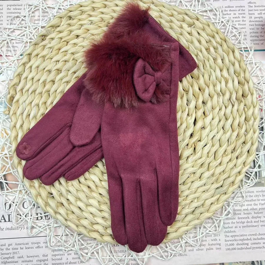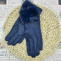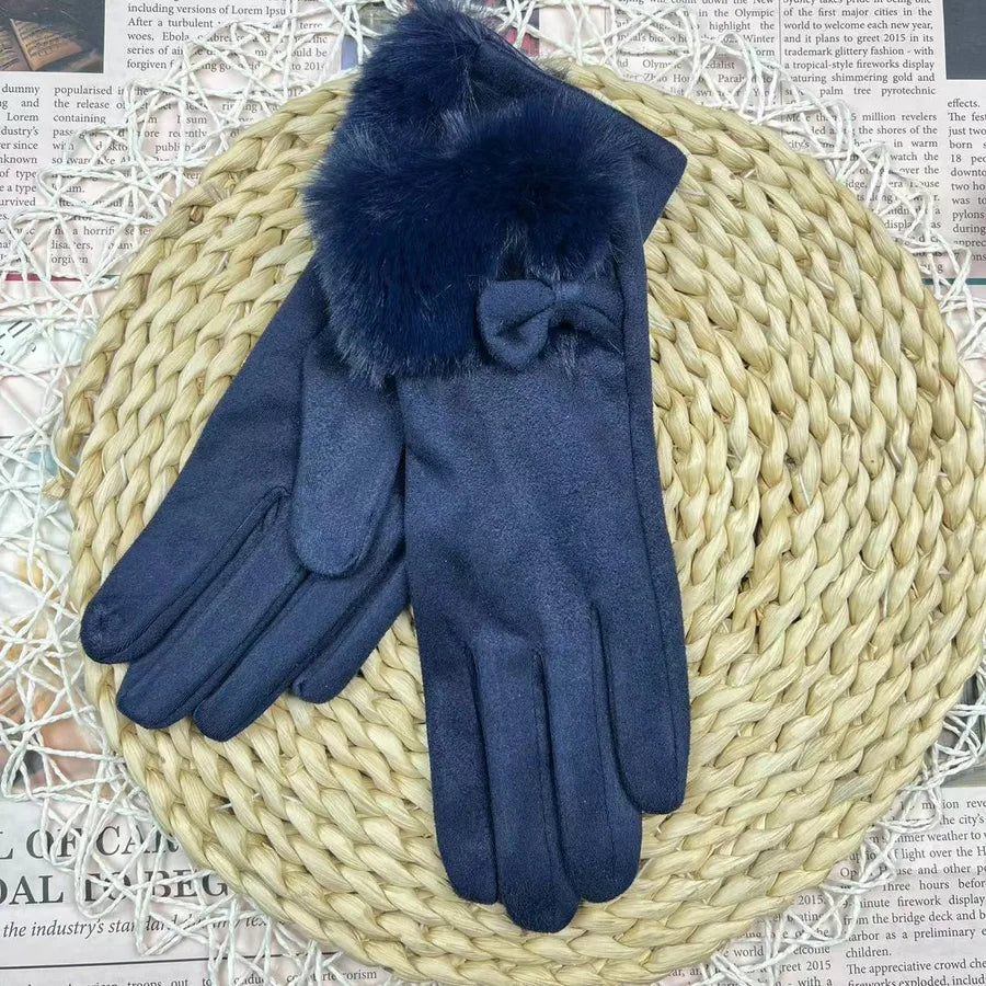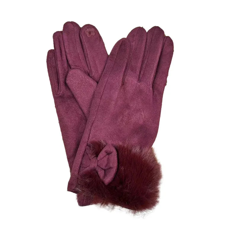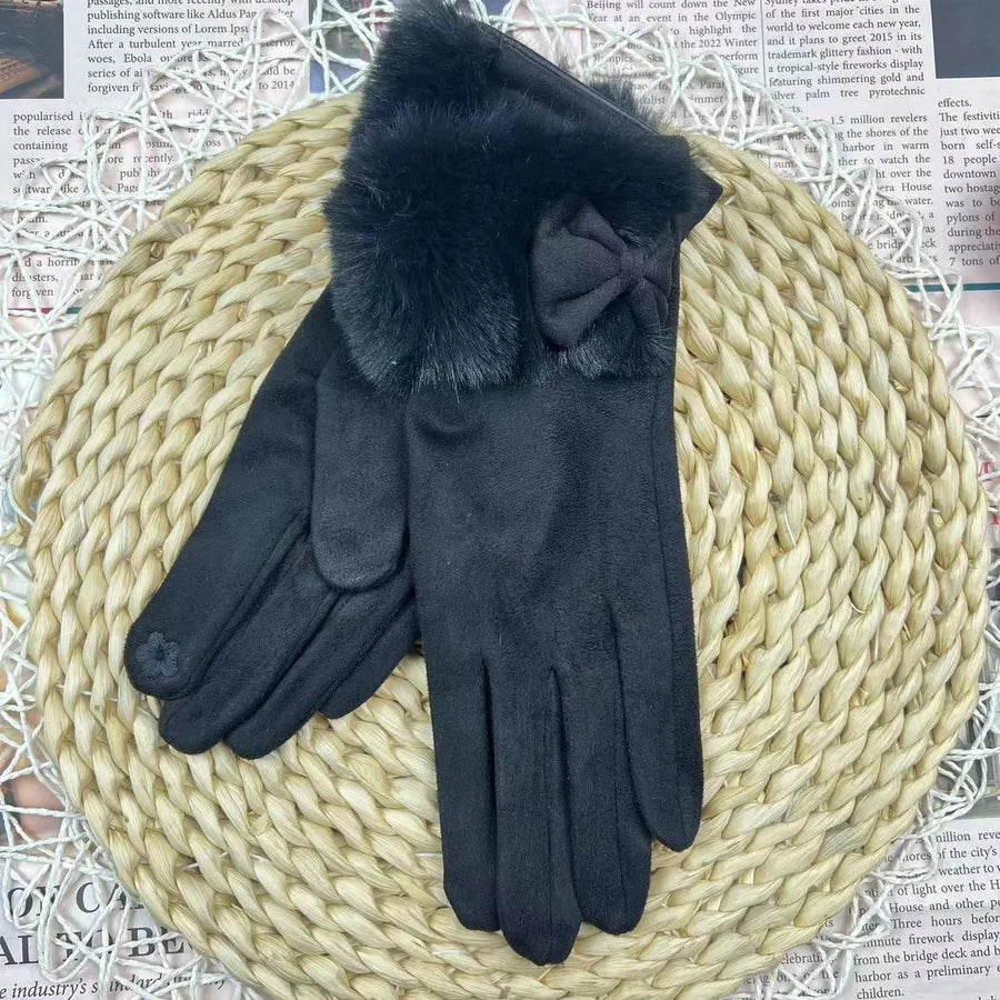Women's Winter Touchscreen Gloves Rabbit Fur Lined Warm Suede Cycling Gloves Stylish Basic European Simple Design