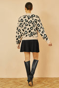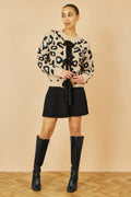 Yumi Beige Animal Print Intarsia Tie Front Cardigan