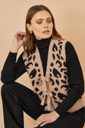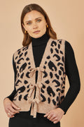 Yumi Beige Animal Print Intarsia Tie Front Waistcoat