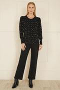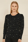 Gorgeous all over pearl design on super soft knitwear for a lovely additional to your winter wardrobe this season. With a round neckline, long sleeves and slight stretch for a comfortable fit. Style with jeans or a leather skirt for the perfect understated party outfit.