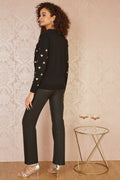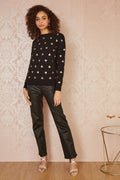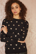 Yumi Black Gold Foil Heart Print Relaxed Fit Jumper