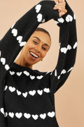 Yumi Black Knitted Jumper With Heart Stripes