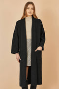 Yumi Black Knitted Maxi Cardigan With Pockets