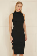 Yumi Black Metallic Fitted High Neck Midi Dress