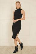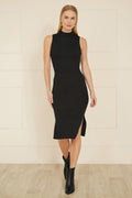 If you're looking for a versatile fit this season, this is it. With a high neckline and sleeveless shape, all crafted from a metallic rib knit that is soft and comfortable. The midi length is paired with a side split that looks great paired with boots.