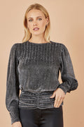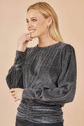 Yumi Black Metallic Stretch Ruched Hem Top