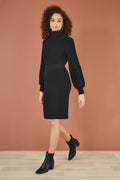 Yumi Black Roll Neck Knitted Dress With Fitted Waist