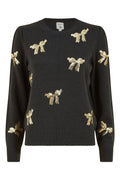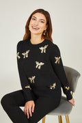 Yumi Black Sequin All Over Applique Bow Knitted Jumper