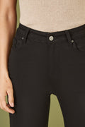 Yumi Black Stretch Canvas Wide Leg High Waist Jeans