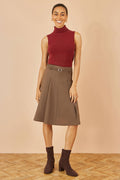 Yumi Brown Pleated Midi Skirt With Matching Belt
