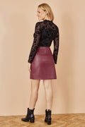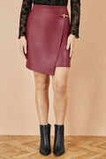 Yumi Burgundy Faux Leather Wrap Mini Skirt
