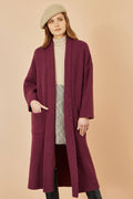 Yumi Burgundy Knitted Maxi Cardigan With Pockets