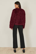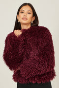 Yumi Burgundy Luxe Fluffy Faux Fur Coat