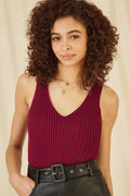 Yumi Burgundy Metallic Rib Knitted Vest Top