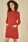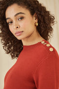Yumi Burnt Orange Knitted Tunic Dress With Gold Hardware Details