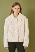 Yumi Cream Luxe Textured Faux Fur Jacket With Pockets