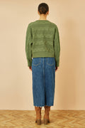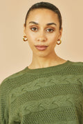 Yumi Green Cable Knit Relaxed Fit Jumper