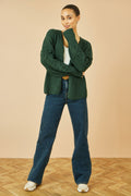 Yumi Green Edge to Edge Cardigan With Flower Detail Sleeves