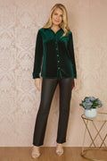 Luxurious feeling velvet is a great way to update your winter fits, whether is be for weekend invites or fancier occasions this shirt is super versatile. In a relaxed fit, pair with faux leather or wide leg trousers for a sophisticated look. The button down design in simple and timeless, in gorgeous jewel tones.