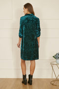 Yumi Green Velvet Tunic Dress With 3/4 Sleeves