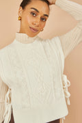 Yumi Ivory Flower Cable Knit Tie Side Pullover
