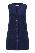 Yumi Navy Cord Button Through Pinafore Dress With Pockets