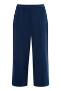 Yumi Navy Cord Cropped Wide Leg Trousers With Pockets