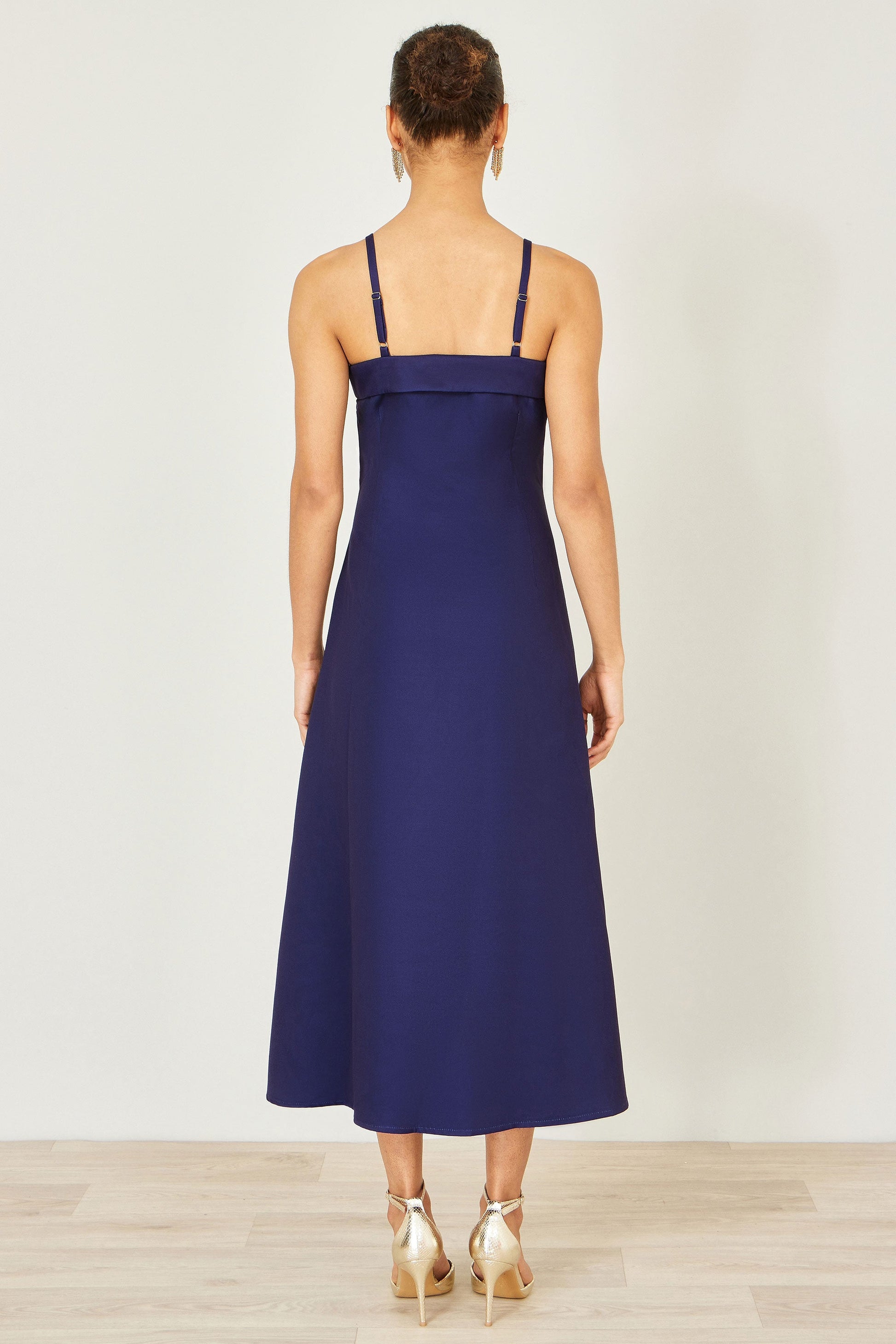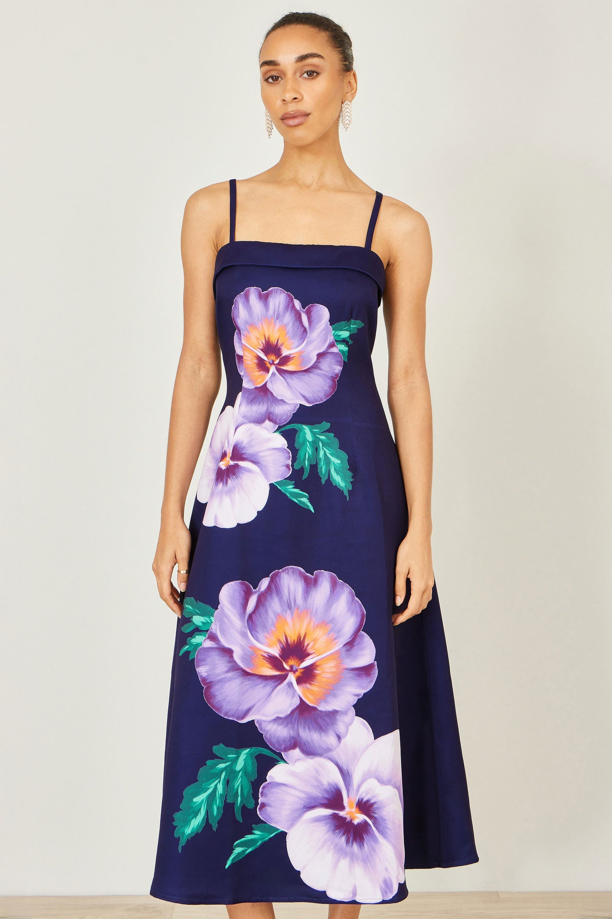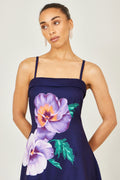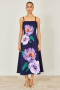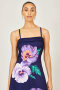Yumi Navy Pansy Strappy Midi Dress
