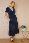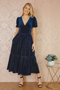 Yumi Navy Velvet Midi Dress