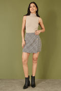 Yumi Oatmeal Knitted Roll Neck Sleeveless Jumper