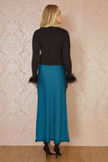 Yumi Teal Satin Midi Skirt