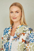 Yumi White Patchwork Print Reversible Cotton Quilted Jacket